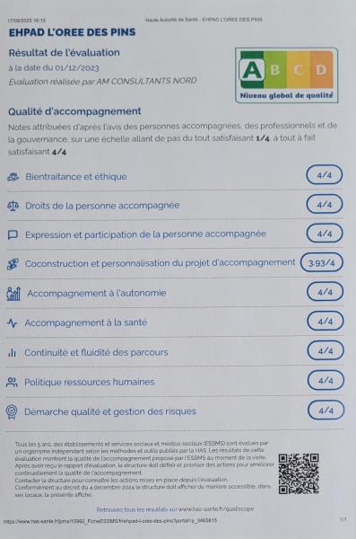 L'établissement l'Orée des Pins, Groupe Domusvi, a effectué un audit externe, selon les recommandations de l'HAS (Haute Autorité de Santé) en 2023.