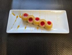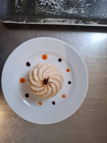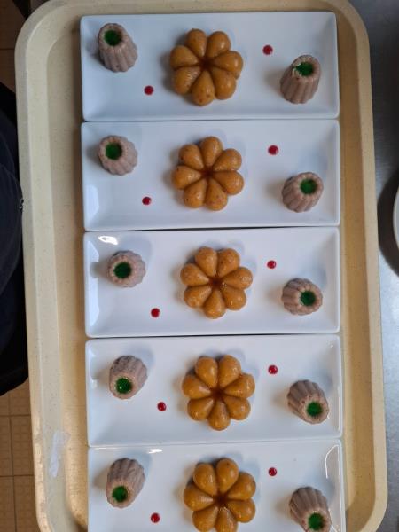 L'équipe cuisine (Samuel, Guillaume et Vanessa) a mené un gros travail de préparation et des présentation des entrés, plats et desserts pour les textures modifiées.